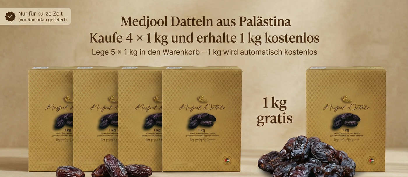 Der Ablauf der Bestellung war sehr gut und die Lieferung erfolgte sehr schnell, die Datteln sind extra sehr gute Qualität und das Sie aus Palestina kommen war noch ein Grund die zu kaufen.