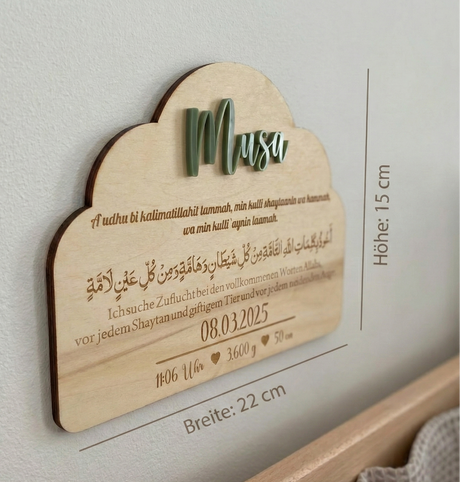 Normaler Preis 2,20 €GrundpreisPersonalisierte Geburts-Holztafel mit Schutz-Dua